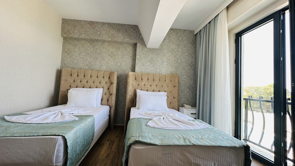 Otel odalarımız, modern tasarımı ve konforlu donanımıyla misafirlerimize huzurlu bir konaklama sunar. Her odada, rahat bir uyku için lüks yataklar, şık mobilyalar ve en son teknolojik imkanlar mevcuttur.