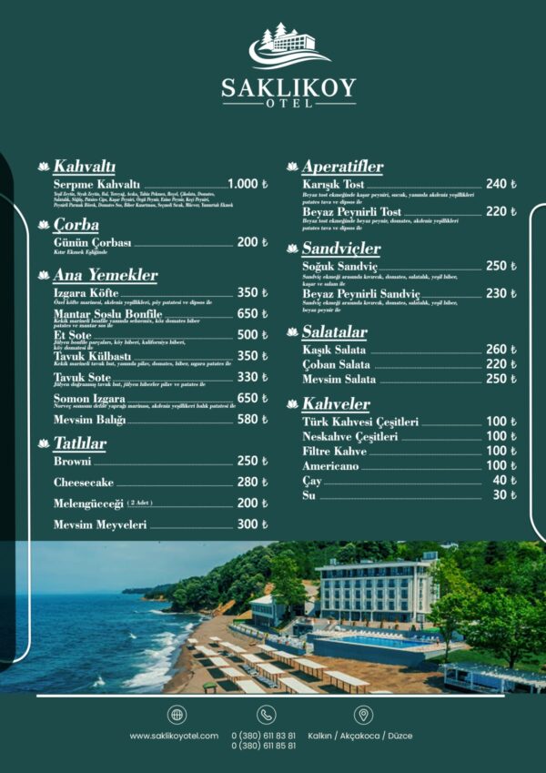 Saklıkoy Restoran’da her tabak, doğanın huzurunu ve denizin ferahlığını yansıtır. Taze, yerel malzemelerle hazırlanan özel menümüz; dünya mutfağının zarafetiyle birleşerek size unutulmaz bir lezzet yolculuğu sunar.